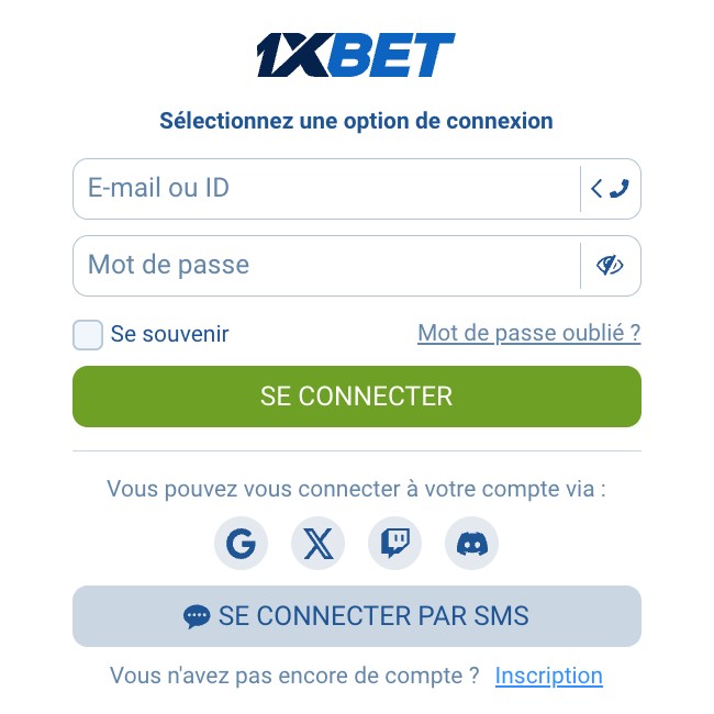 Cliquez sur le bouton de connexion 1xBet disponible sur cette page. Renseignez votre identifiant et votre mot de passe, validez — vous êtes immédiatement redirigé vers votre tableau de bord avec accès à vos paris en cours, votre solde en MAD et toutes les fonctionnalités de la plateforme.